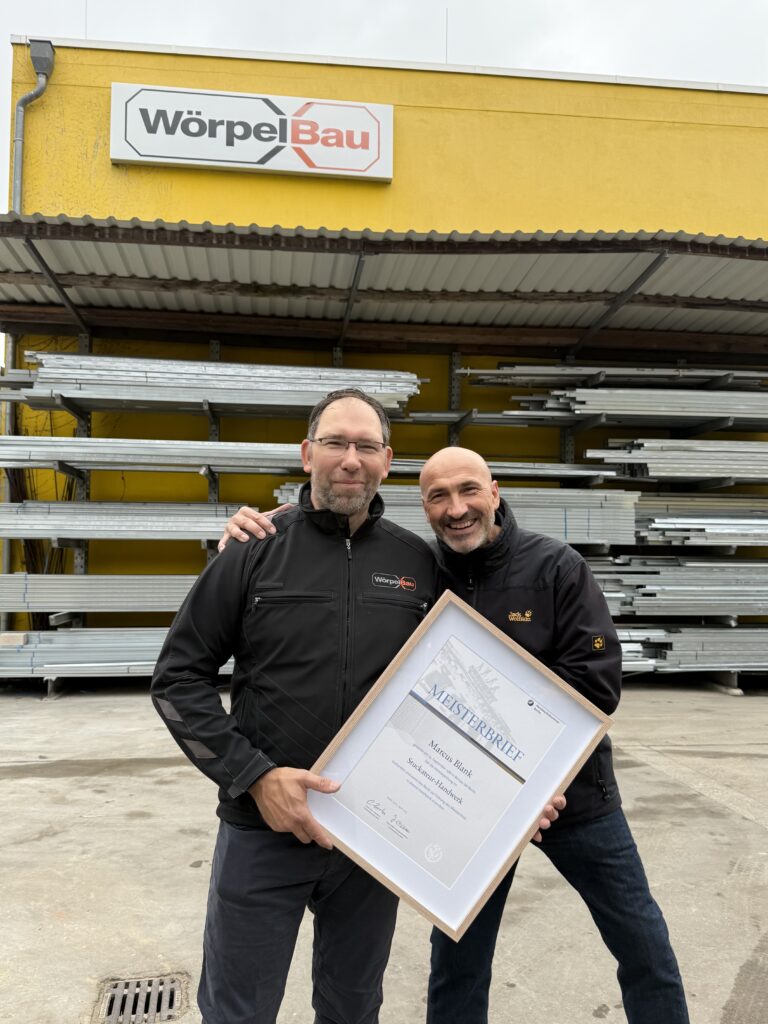 Bei Wörpel Bau in Berlin sind wir stolz auf unsere Mitarbeiter und ihre Entwicklung. Heute haben wir einen ganz besonderen Grund zur Freude und möchten eine großartige Nachricht mit Ihnen teilen: Unser langjähriger und geschätzter Mitarbeiter, Herr Marcus Blank, hat erfolgreich seine Ausbildung zum Stuckateurmeister abgeschlossen! Ein Meilenstein für Marcus und ein enormer Gewinn für unser gesamtes Unternehmen.